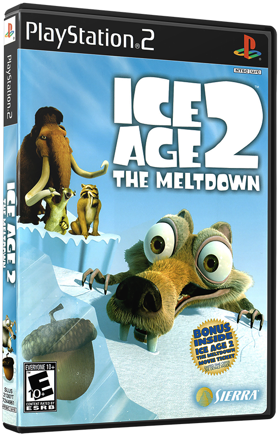 Ice Age 2: The Meltdown is loosely based on the movie of the same name. The game takes place in prehistory - you play as Scrat, the hapless (but not totally helpless!) proto-squirrel, helping your friends escape the coming of a huge flood. The WASD keys move you forward and back, left and right, and the mouse controls camera movement and some actions. Scrat has a few special moves as well, such as sniff, his spin attack, a double jump, a ground stomp (useful for breaking ice) and a roll attack. Much of the game consists of hunting down acorns and other special nuts for health renewal or for unlocking bonuses. There are a few mini-games within the game - you can play as Sid, zipping along an ice slide while avoiding obstacles; there`s also penguin-bowling and a mini-game where you "shoot" at monkeys to regain a walnut that was whisked out from under your nose.