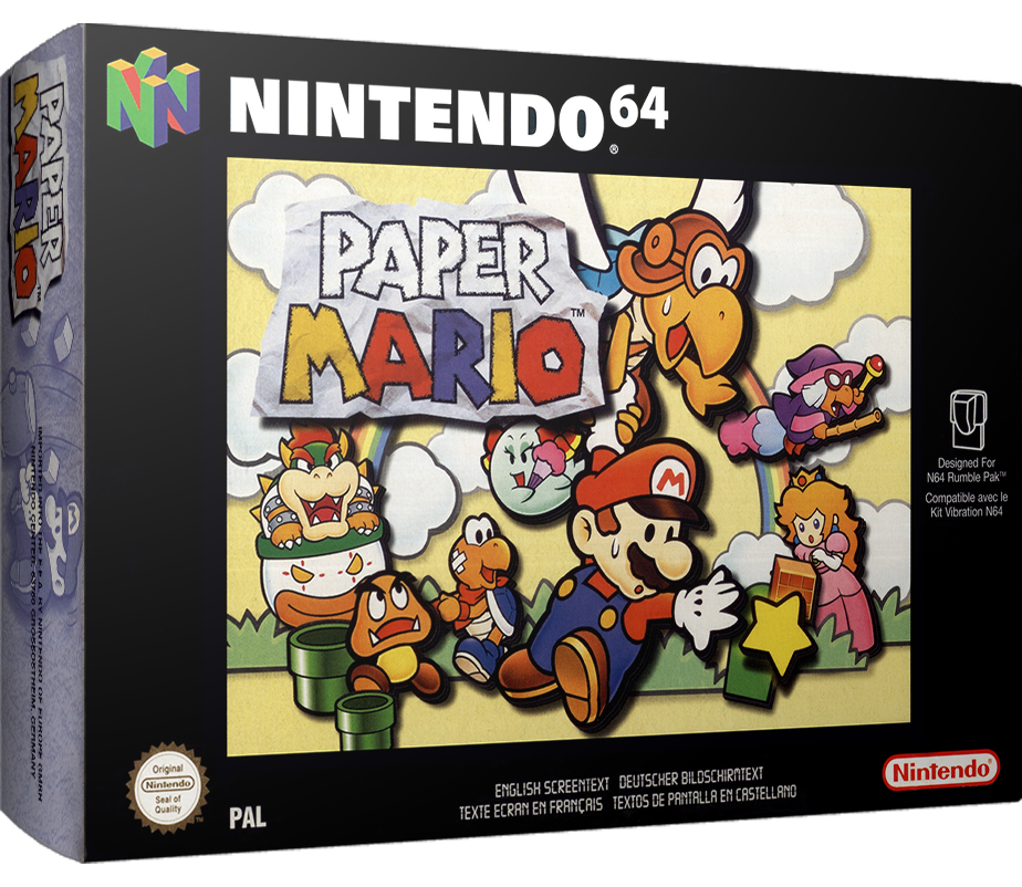 In Paper Mario für Nintendo 64 erwartet die Mario Fans ein kunterbuntes Rollenspiel-Abenteuer. Dabei begegnen Mario und seine Freunde vielen bekannten Gesichtern aus dem legendären Mario-Universum. Gemeinsam durchstreifen sie 8 wundervoll gestaltete 3D-Welten, in denen knifflige Geheimnisse gelüftet und aufregende Abenteuer bestanden werden müssen. Auch actionreiche Kämpfe mit angriffslustigen Gegnern stehen den Spielhelden bevor. Das jedoch erfordert jede Menge Mut und Training. Zum Glück stehen Mario auf seiner Suche nach der Prinzessin Freunde mit einer Vielzahl ganz besonderer Fähigkeiten zur Seite. Zusätzlich müssen die Spieler Sternsplitter einsammeln, deren magische Energie dem Spielhelden nutzt, um erfolgreich gegen die Bösewichte anzutreten. Somit sind Mario und seine Freunde für das fantastische Abenteuer bestens gewappnet. Paper Mario für Nintendo 64: ein Rollenspiel mit erstklassiger Besetzung!